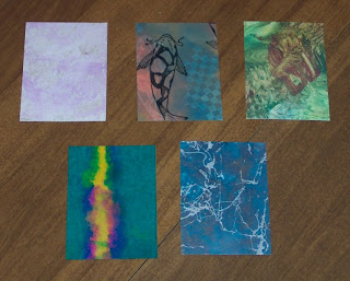 I signed up for a "Little Beauties" Swap on one of my groups - we had to create "instant art" pieces that were larger than inchies and smaller than ATC's. Below is a sample of the little beauties I created.